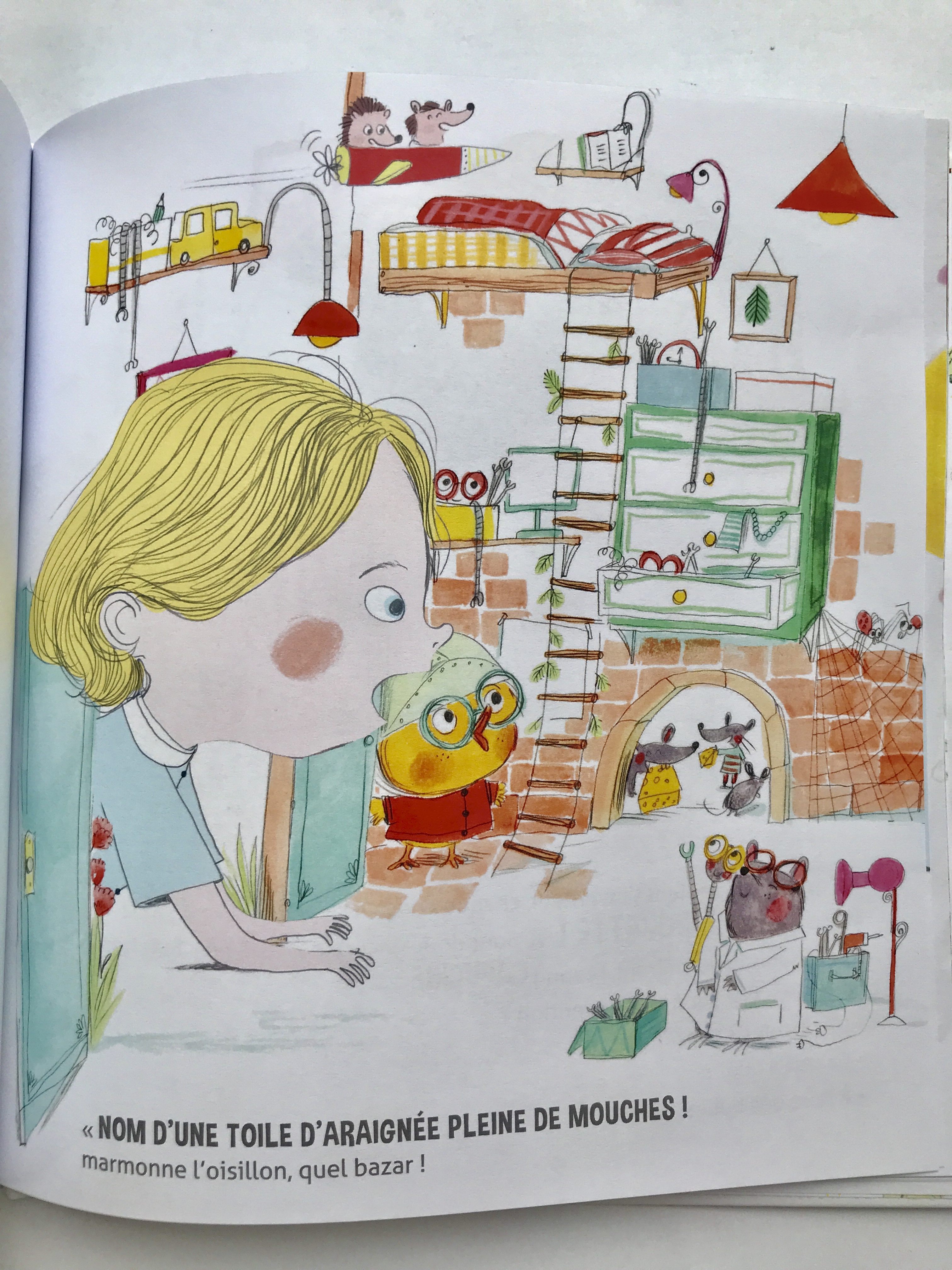 « A la maison, ce que j’aime c’est lire l’histoire lors du rituel du soir. Cela permet de finir la journée sur un moment de joie. Ce que les filles préfèrent, elles, ce sont les petites exclamations de l’Oisillon « Nom de …. », comme « Nom d’une coquillette pas cuite » ou « Nom d’une pépite au chocolat » qu’elles ressortent à tout bout de champs dans la maison ! »